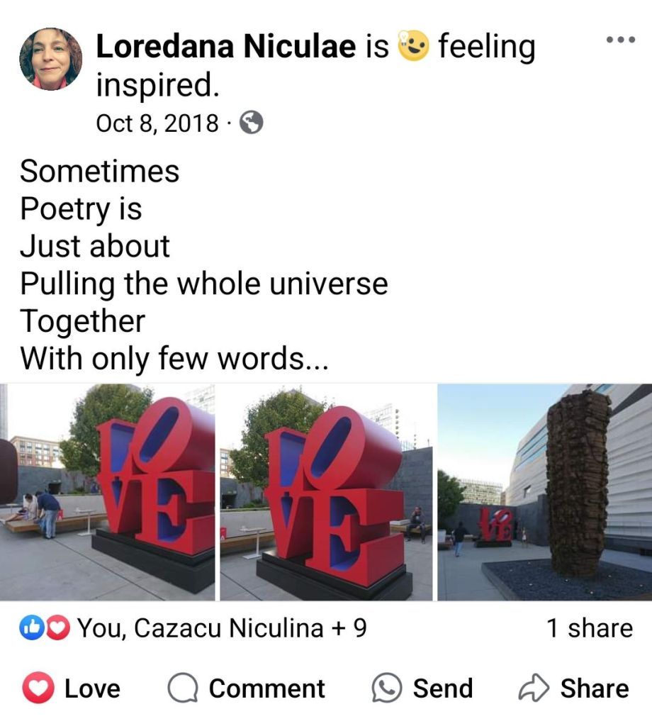 Posted on November 16, 2024 by NehmtzeeLO-VE “SometimesPoetry isJust aboutPulling the whole universeTogetherWith only few words…” Oct. 2018 I just love how LO sits on VE! Share this: Share on X (Opens in new window) X Share on Facebook (Opens in new window) Facebook Like Loading... Related